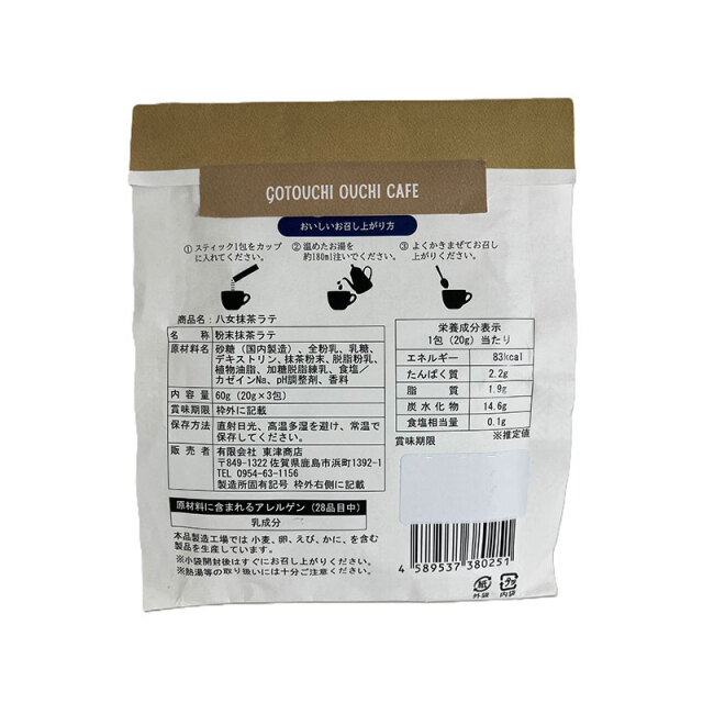 | 原材料 | 砂糖(国内製造)、全粉乳、乳糖、デキストリン、抹茶粉末、脱脂粉乳、植物油脂、加糖脱脂練乳、食塩/カゼインNa、pH調整剤、香料 |