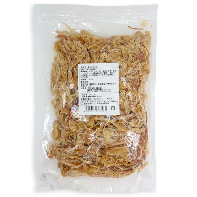 柔らかく仕上げたさきいかをたっぷり300g詰め込みましたので、ご家庭での団らんやおもてなしの場にも最適。お酒のおつまみとしてはもちろん、ちょっとしたおやつや小腹満たしにもぴったりです。
